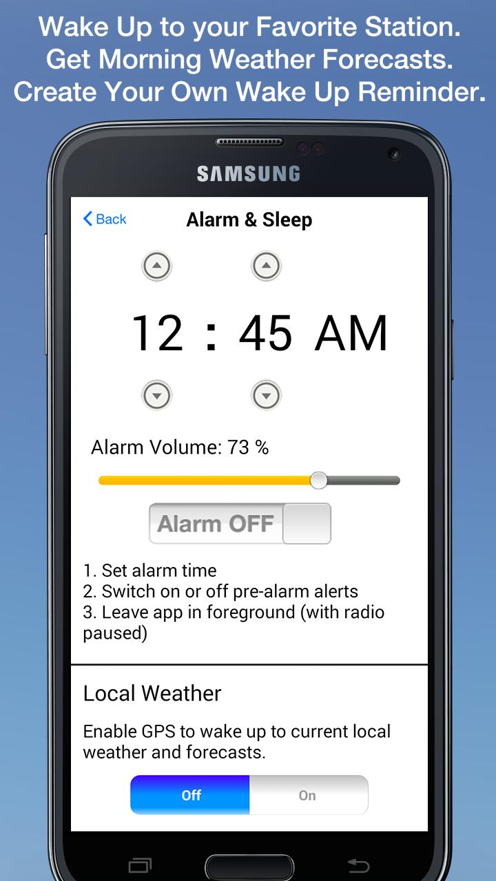 - Wake up to your favorite station with our alarm clock. Record a personal reminder to play before waking to the station.
