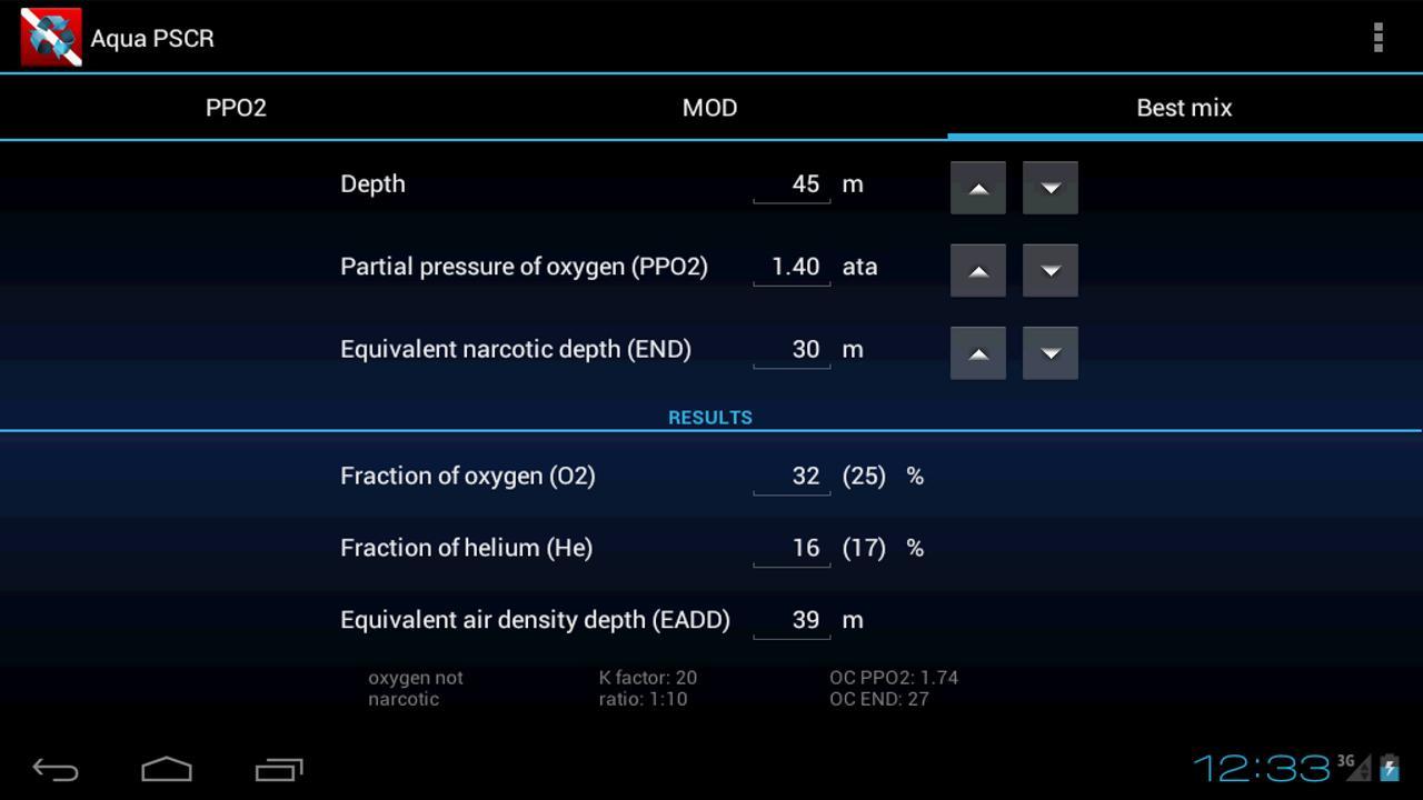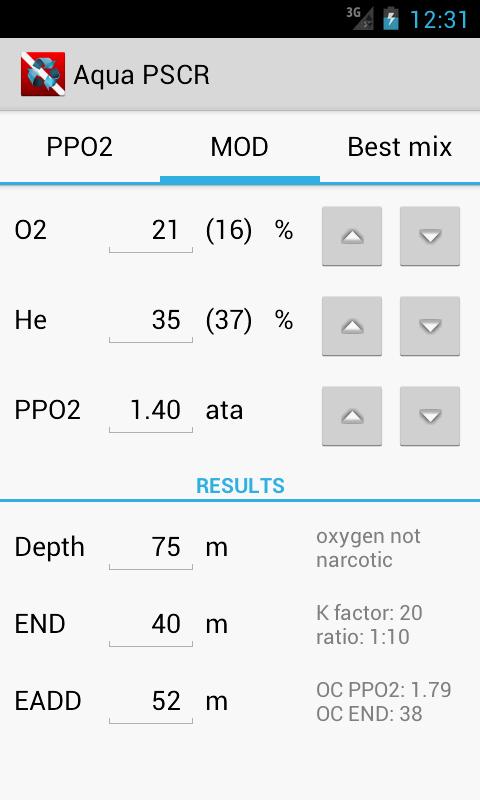 Aqua PSCR is a Passive Semi Closed Rebreather gas calculator based on Dalton's law. Aqua PSCR can be used for gas mixes containing nitrogen, oxygen (nitrox) and helium (trimix, heliox).