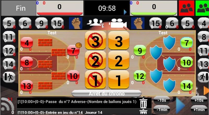 A simplified interface, adapted to team statistics (ball won/lost, fault and shooting)