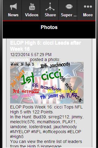 Features of "Big Game" app: