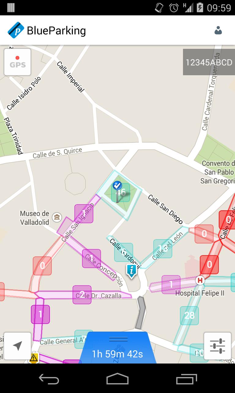 BlueParking allows you to know where there are free sites to park in the regulated parking area (ora) of Valladolid, and pay for this parking lot.