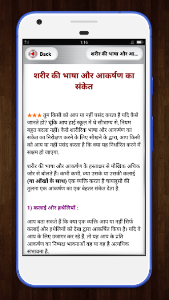 It is an amazing Body language app in hindi, which allows you to be skilled in how to read body language through tips from almost every great Body language book in hindi.