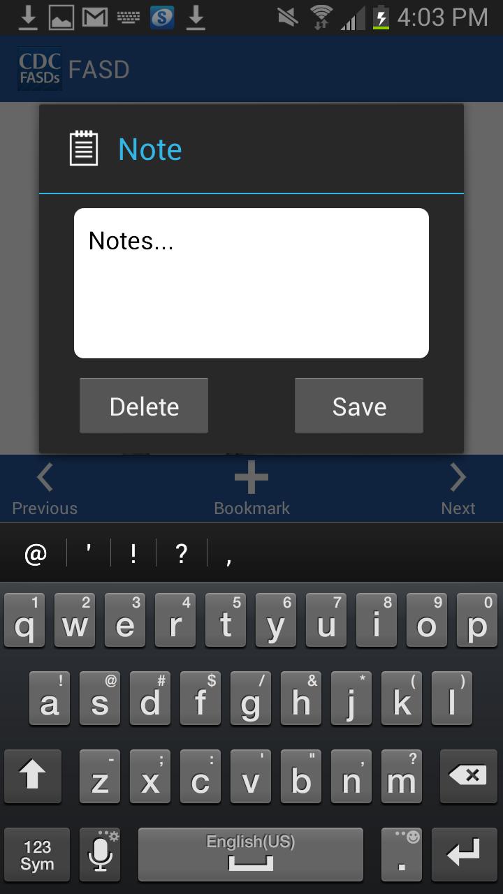 This application provides the latest information related to the use of alcohol during pregnancy and fetal alcohol spectrum disorders (FASDs). From women planning a pregnancy to health care providers to families and educators, this application allows users to easily find and share the latest in the prevention, recognition, and treatment of FASDs. The application is one of an expanding collection of applications from CDC on a variety of specific topics, each optimized for your mobile device. Now you can have topical CDC content wherever you go. When your device is connected, the content is updated automatically so you always have the most up-to-date information. You can personalize your experience with features like highlighting, annotations, and bookmarks to suit your own needs. Share the content with others through social media such as Facebook and Twitter.