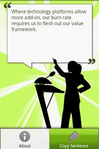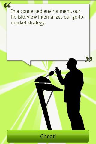 Cheater generates a huge number of ready-to-use sentences just after a click (or a shake). Cheater allows the sentences to be copied and sent via SMS or e-email. The unique combinations can increase your success rate in business and all kinds of relationships. Remember: image is everything.