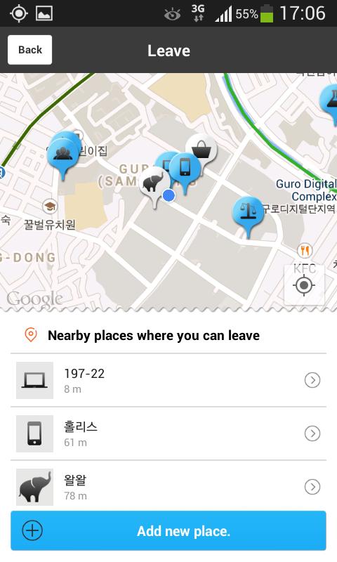 Every places on the map could be appointed or cancelled as your public(official) work-place. You can set up if the staffs can check in the official work-places only or every places. Of course, you can adjust the radius after setting up the official work-places only mode. If there's no place to find on the map, anybody can create and share the place his own. The created and shared places by anybody could become the official work-place by each company. If the staff wants to get the accreditation of the place he used to visit, he can send the message for requesting to you by just one tabbing. Of course, the staff's frequent visited places are listed automatically on your set-up screen then you can set up the official place you want.