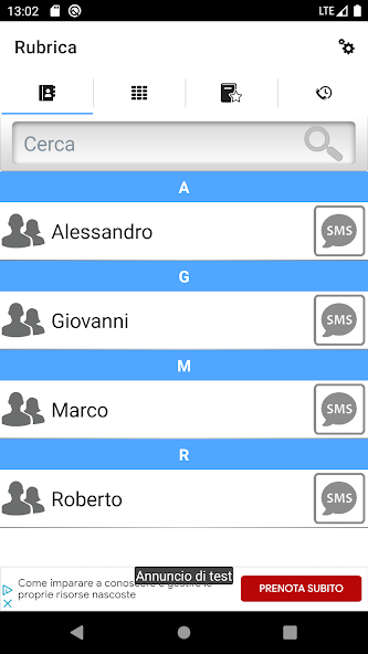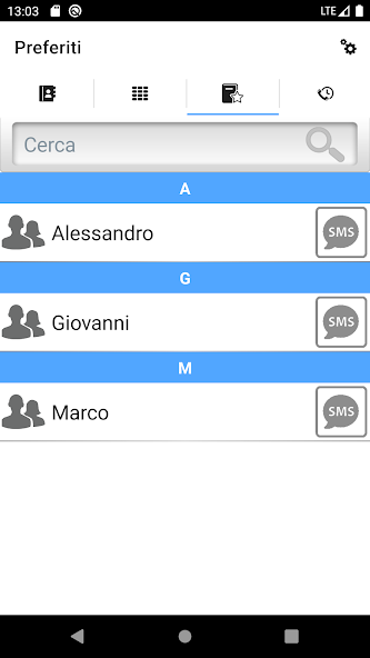 3) In the section Favourites there are all contacts that are set as Favourite in your device. It's possible to find easily a contact typing its name or surname in the apposite field.