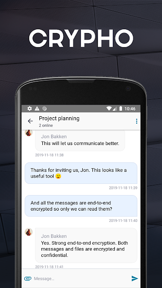 Crypho is enterprise mobile chat and file-sharing with end-to-end encryption.