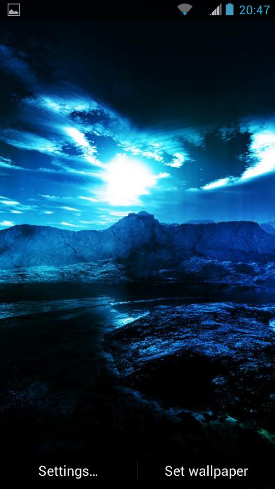 You will get 8 stock dark blue backgrounds: dew on a leaf, dragon, wolf and the moon, forest, tree and the sky, sunset, nature and wet leaf. But if you want you can load other image from your storage. All images will be automatically adjusted to the size of your screen, thus you do not need to worry about selecting the image with the desired resolution.