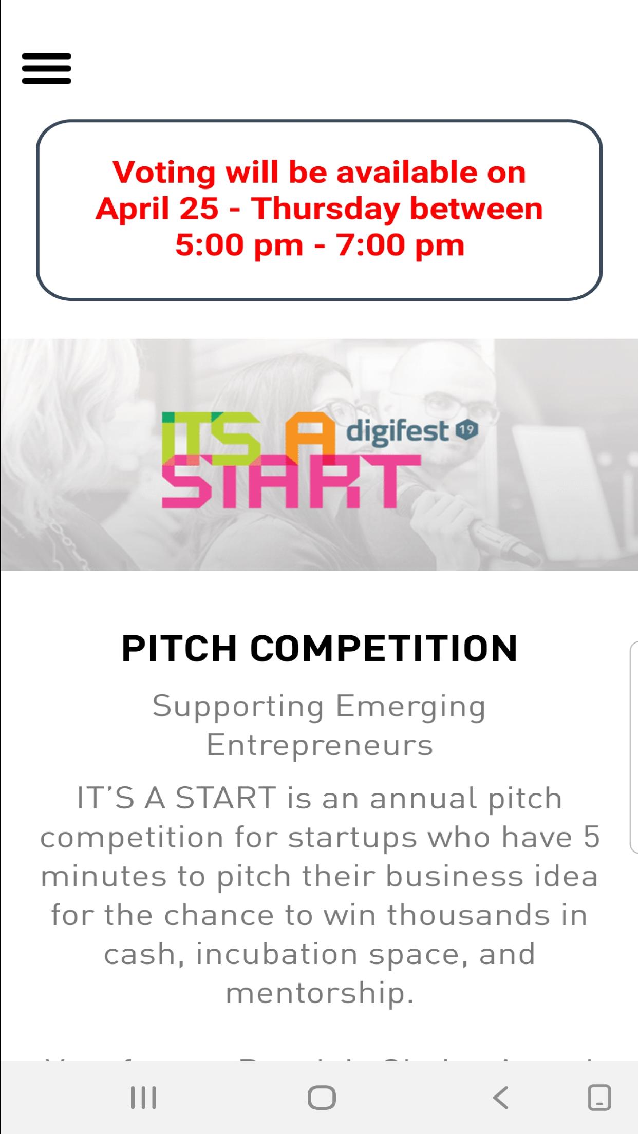 + Official Voting App for the IT'S A START Pitch Competition People's Choice Award.
