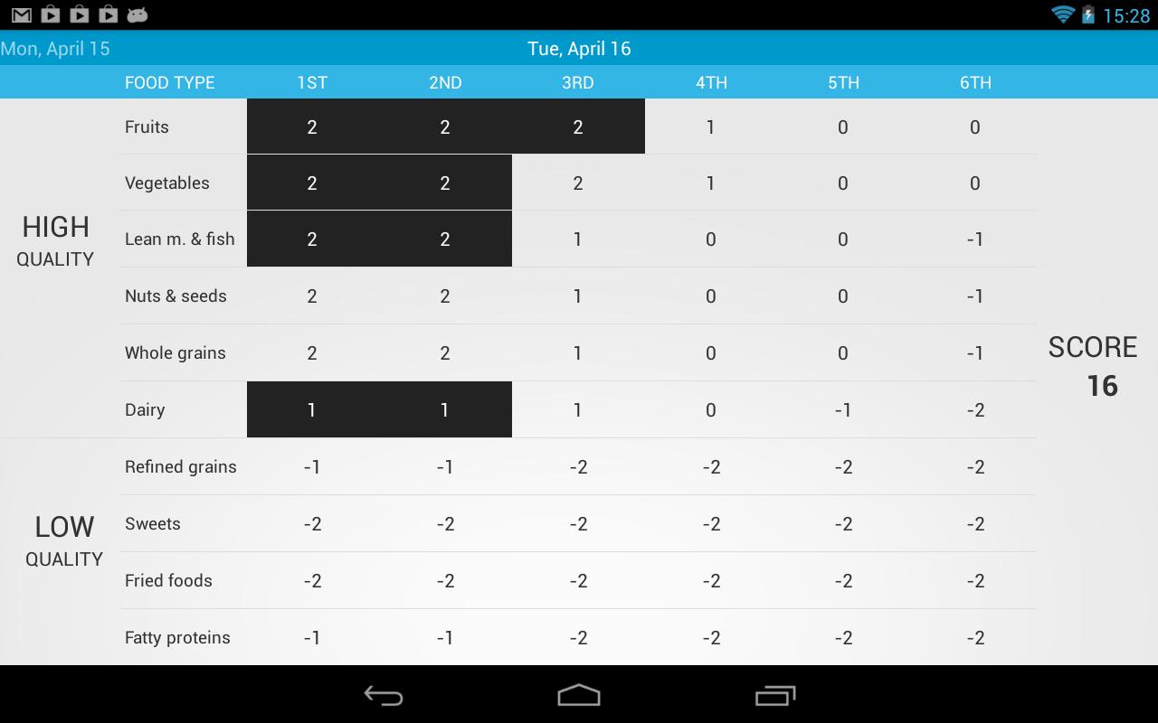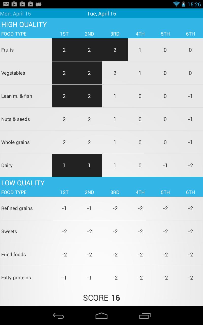 * Tap food items as you eat them, or all at once at the end of day