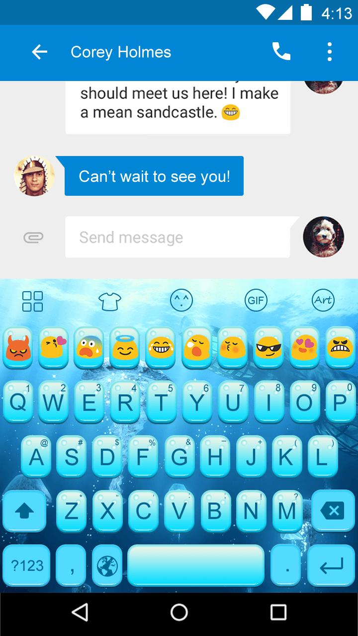 Gif Keyboard-Emoji (Shark) is a Free, cute, personalized, fast,easy,fun,smart and colorful, with infinite GIF animations and more than 3,000 emoji,emoticons.swipe-to-type, word predictions, auto-correct, 60+ supported languages. It enables you to share GIF animations easily, and helps you quickly enter emoji&emoticons, stickers, coolsymbols, icons and smiley icons in any of the scenes, Such as news, Email,Facebook,Twitter and other social networking applications。