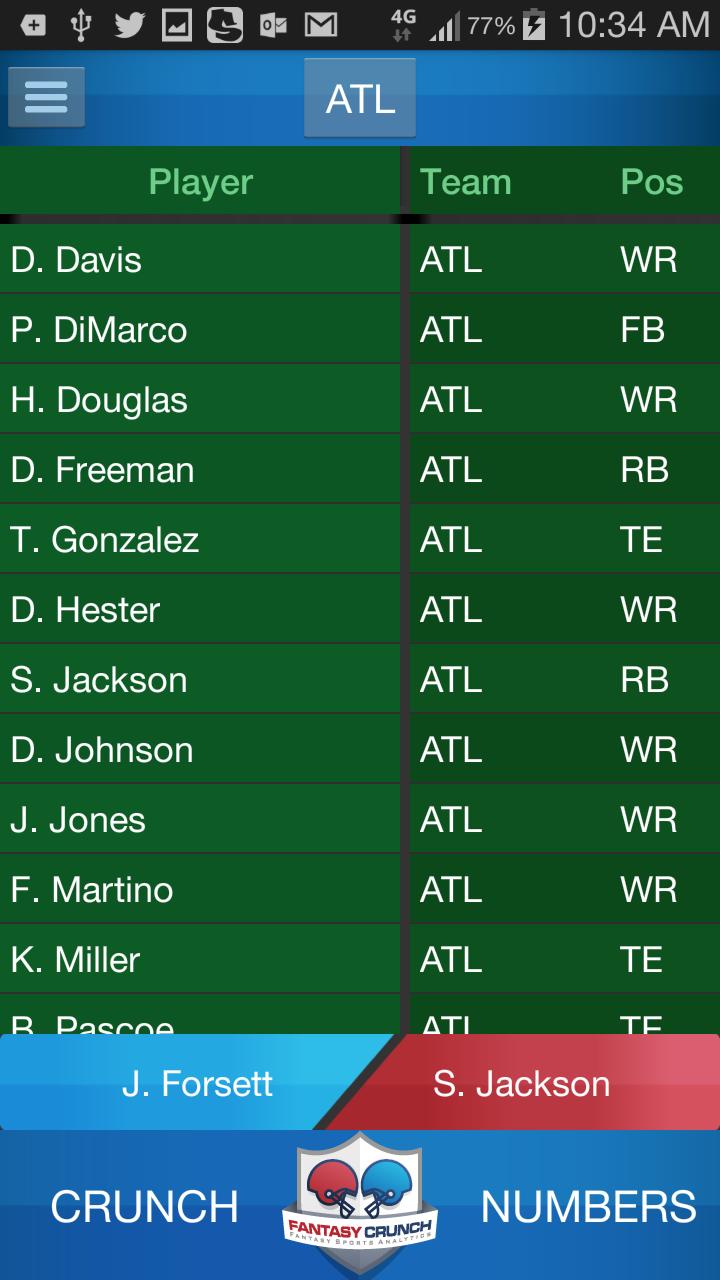 Fantasy Crunch can also help you evaluate trades and if you are into the popular one week draft leagues, Fantasy Crunch will also help you choose players at the right price. Fantasy Crunch licenses data from the National Football League via Sports Data, LLC.