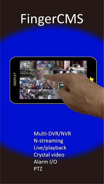The FingerCMS (Central Monitoring Software) for Android is designed for use with DVRs. With state-of-the-art CMS technology for Android, virtually unlimited number of DVRs can be monitored and controlled.