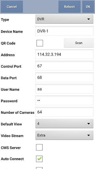 . Password to access DVRs.