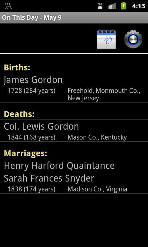 Tapping the widget gives you a full list of the day's events, with access to the detail screens in GedStar Pro. Status-bar notifications are also available. You will find this app to be very useful and entertaining!