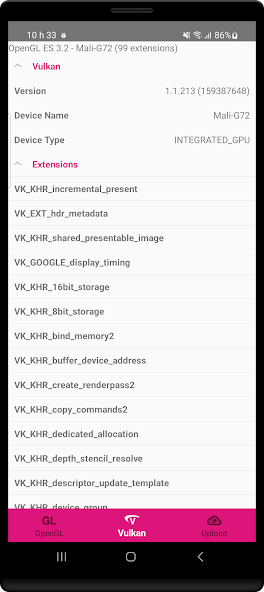 Explore the capabilities of your Android device's graphics with the GLview Extensions Viewer app. Developed by the creators of the renowned OpenGL Extensions Viewer on PC and Mac, this Android version provides detailed information about your device's OpenGL ES and Vulkan support.