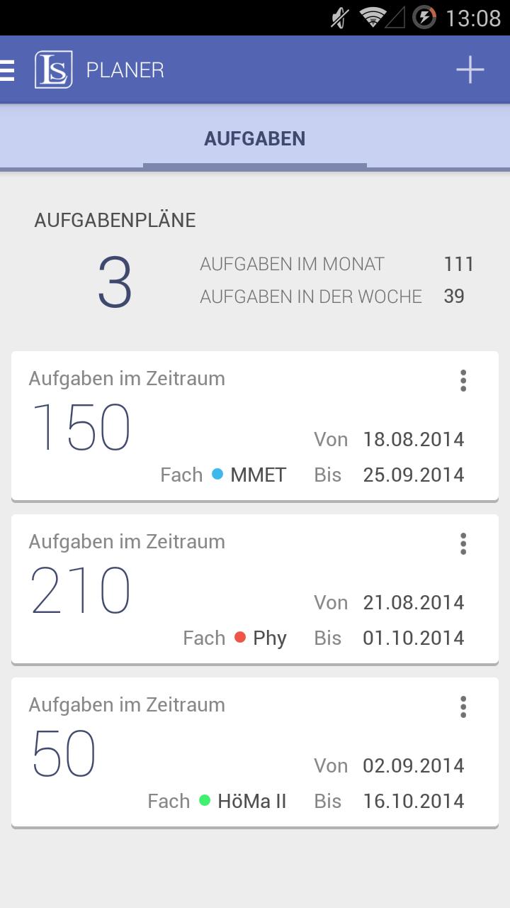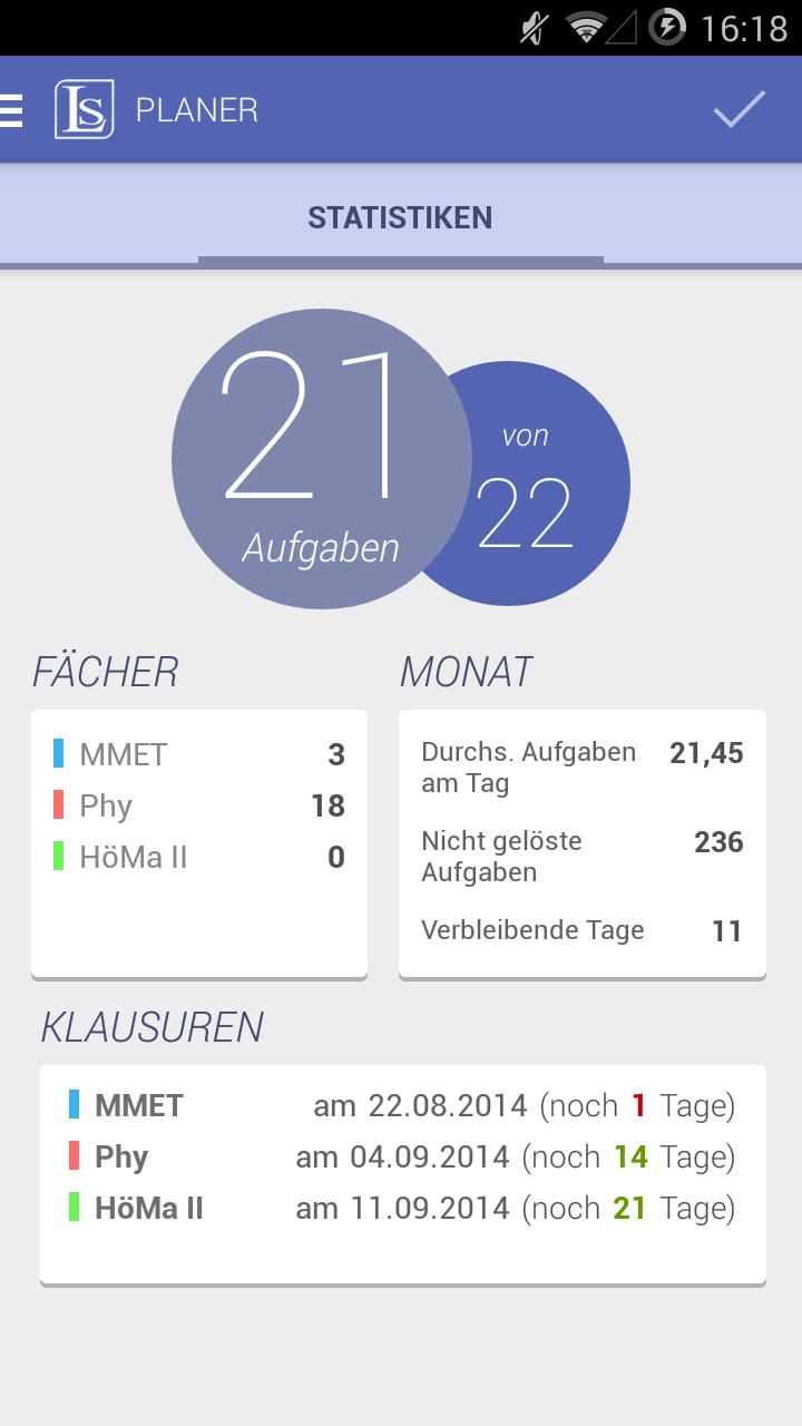 Learnstage Planer helps you maintaining the overview of upcoming exams as well as tasks and calculates your individual task schedule.