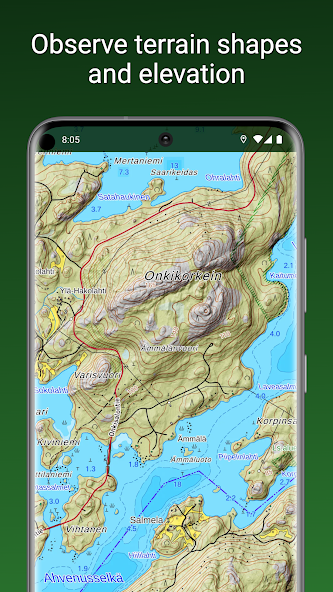 Free topographic map enhances outdoor activities and aids in the exploration of new places. It enables you to effortlessly determine your location and understand your surroundings. You can save interesting places and navigate to various destinations. By subscribing to Maastokartat Plus, you gain access to valuable additional features, including high-definition topographic maps with elevation and depth details, 3D maps, property boundaries, route planning and tracking, offline maps, and location sharing.