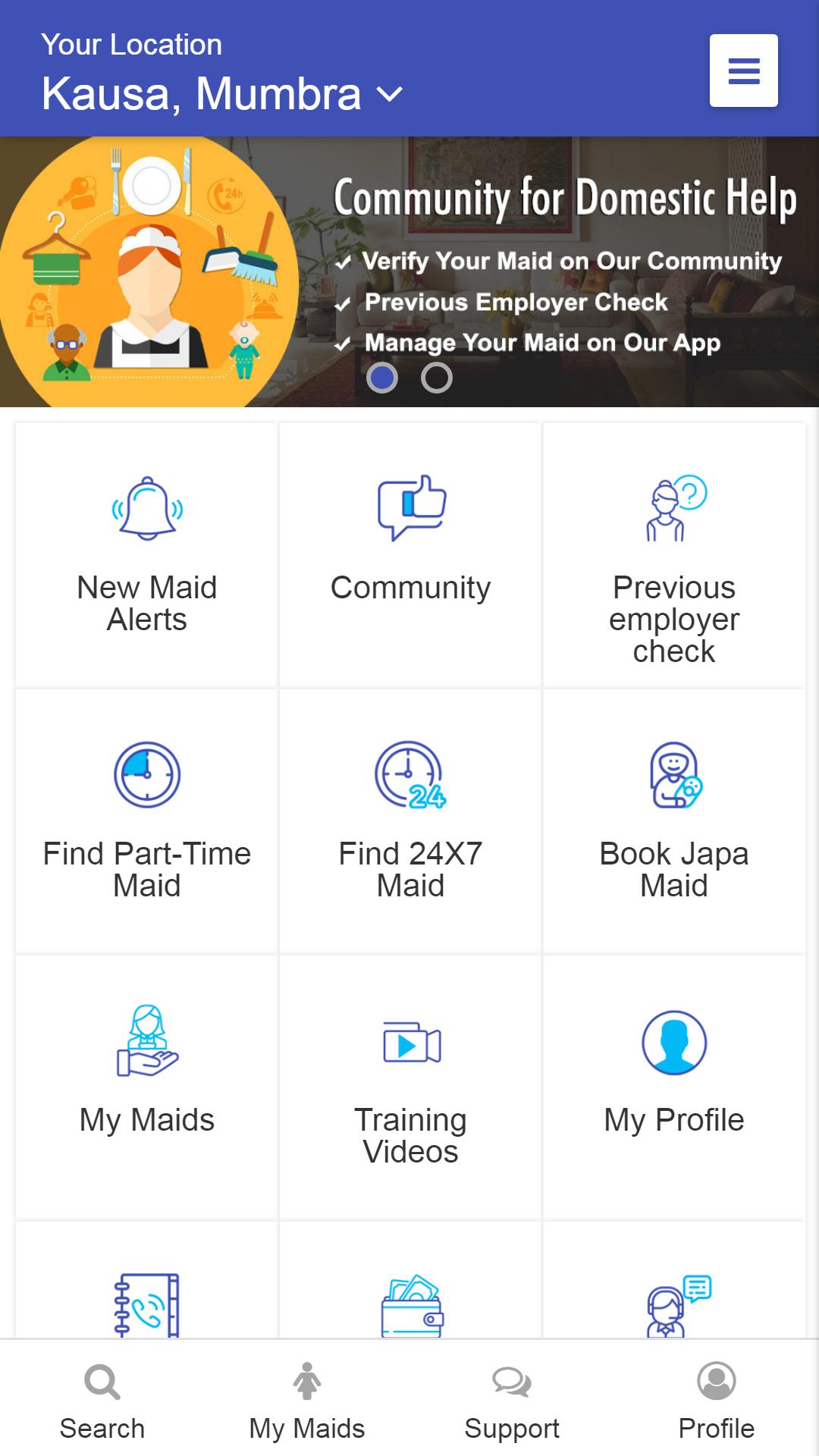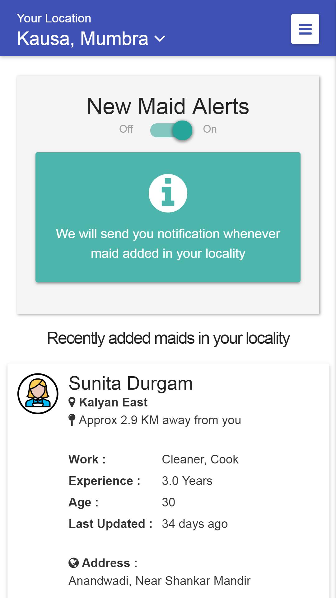 In Maid kart (maid cart) Other features include training videos and document locker. This app has database of over 30000 maids from Mumbai and Bangalore and we are soon adding data of other cities too.