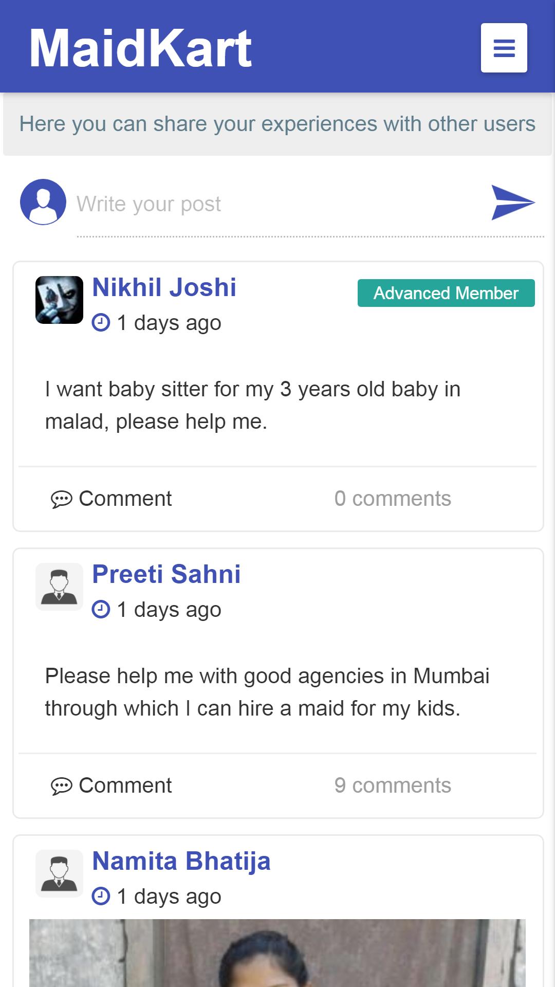 Maidkart is India's largest mobile app through which you can find part time and full time maids, cooks, babysitters and caretakers. You can also talk to other employers like you and check whether your housemaid has tried to go for interview somewhere else.