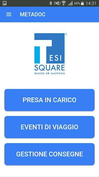 The MetaDoc APP is connected to TESISQUARE PLATFORM TMS and allows, for the transport of raw materials: the taking in charge, the management of travel events and the management of the delivery (POD). The first step will take place by taking charge of the borderò by the driver, who can perform it by typing the borderò number or by automatically reading the barcode. Subsequently he will affix the signature of acceptance and the print of the PIC will be generated and sent to the TMS. At the same time, the e-mails are sent to the transporter and to the recipient, which contain the pdf of borderò (single pdf with DDT), packing list and PIC as an attachment. During the journey through the TRAVEL EVENTS function, the driver will have the ability to enter specific events related to the single border (eg traffic, vehicle problems, etc.) and attach notes and photos. The event will be sent to the TMS at the time of insertion on the APP. Finally, through the DELIVERY MANAGEMENT it will allow you to enter a delivery result at the time of transport. By selecting the single border, the driver will evaluate the delivery (OK, KO or Delivered with reserve) and the signatures of the carrier and the recipient will be affixed. Upon saving, the POD will be sent to the TMS and e-mails are sent to the carrier and to the recipient, which contain the borderò pdf (single pdf with DDT), PIC and POD attached.