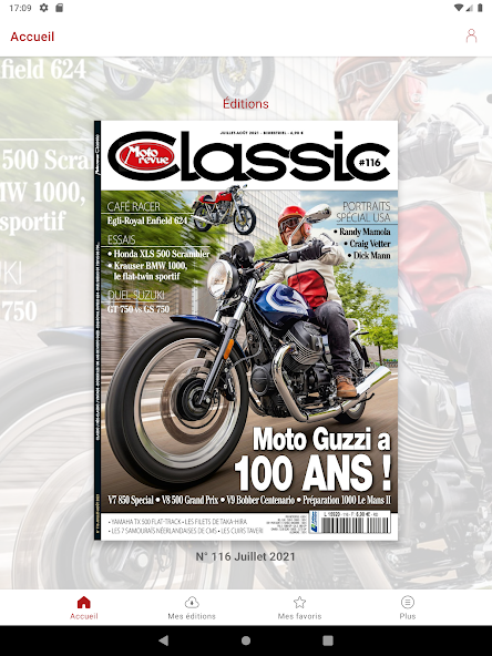 Download the Moto Revue Classic magazine application for free which will allow you to purchase the digital versions, enriched with videos, photos and texts. Also find old issues as well as thematic special issues.