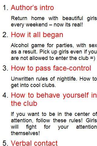 You will learn the most effective methodics I have developed through my long practice of nightlife.