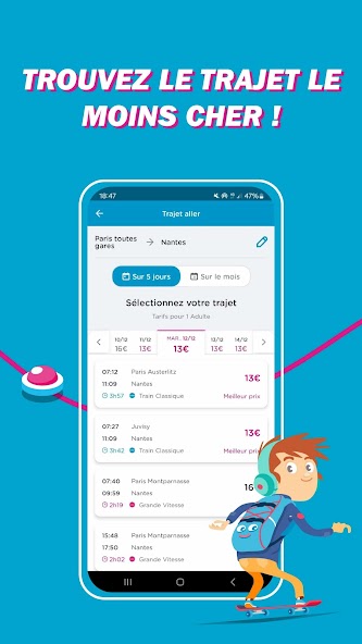 Prepare both your daily life and your vacation with the OUIGO application. For your business trips or your getaways in France, book your low cost & TGV train tickets. With OUIGO, the low cost offer from SNCF Voyageurs, book your tickets 100% online and travel at low prices by High Speed Train and Classic Train to more than 60 destinations in France.