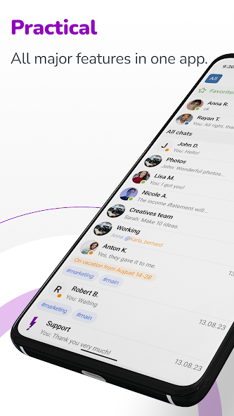 Simply create chats, invite your friends and colleagues as required. Just write the name of the participant and they will automatically be added to the chat.