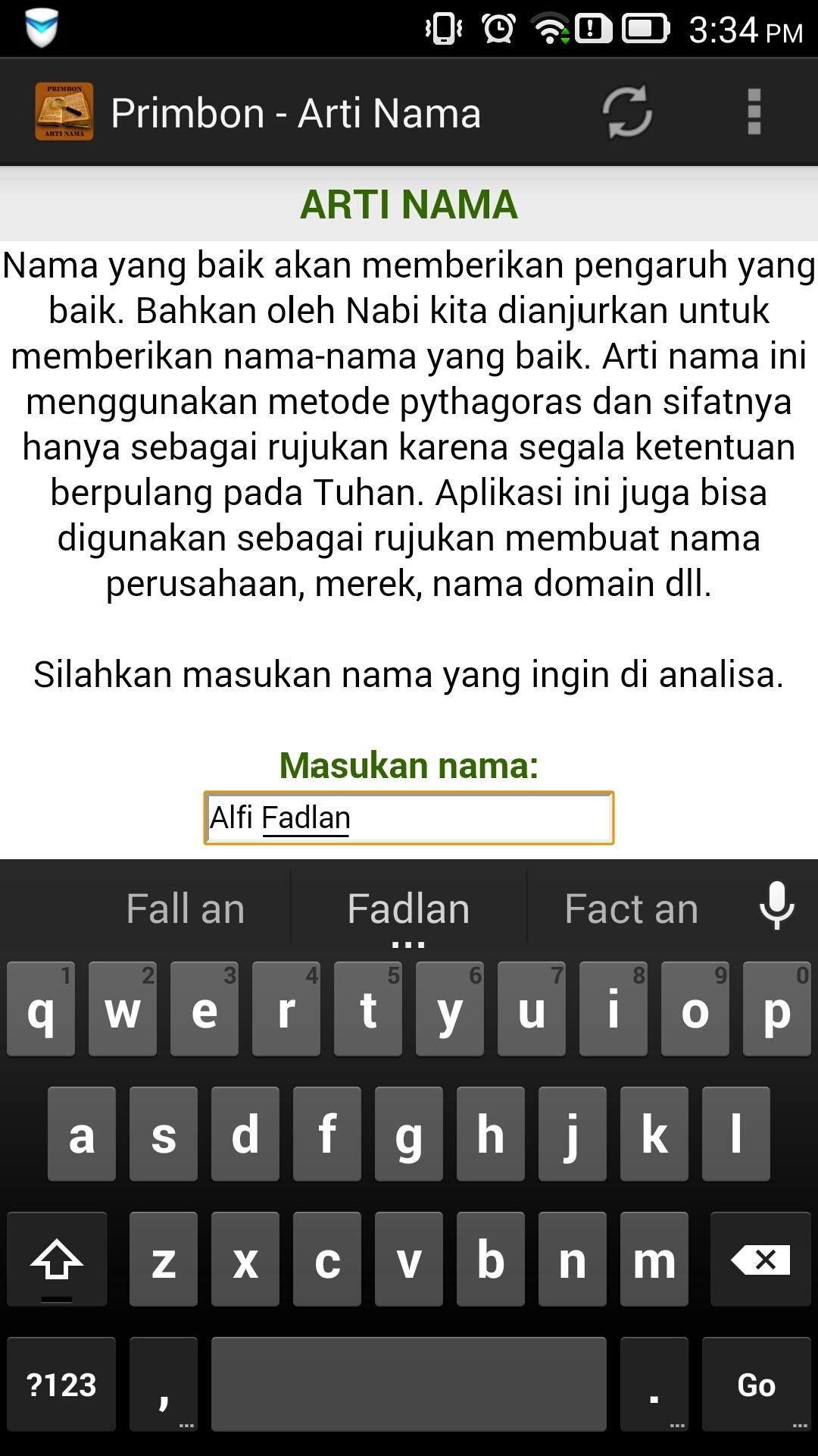Primbon - Arti Nama is an application that is useful for predicting the meaning of someone's name. In addition there are also predictions according to name comparison, character ramal, your elements, fateful time predictions, harmony of partners, hockey ramal, matchmaking, weton, professional forecasts, and many others. This application is only a reference, because all the provisions pass off God.