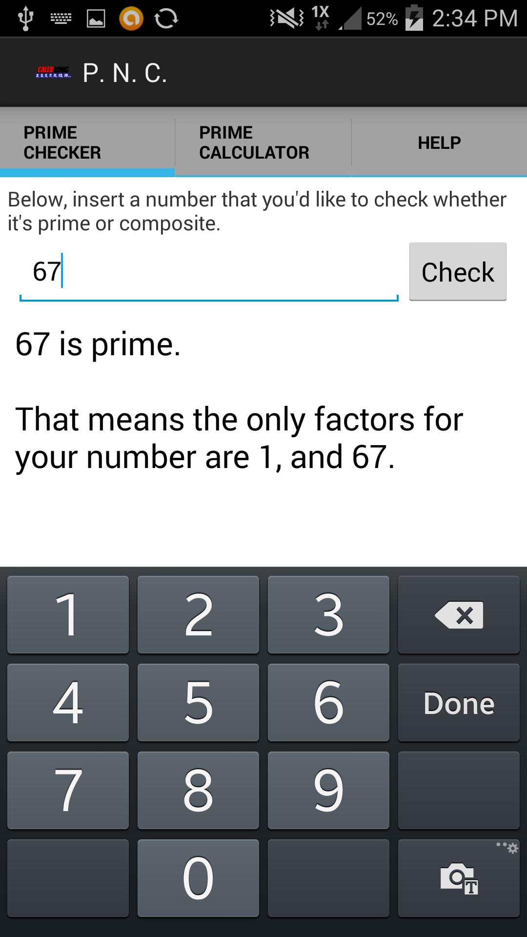 In version 4.0, the application works on nearly 5000 different devices. It will allow you to be in portrait and landscape mode. There are now three tabs near the top of your screen. This will allow you to switch between the Prime Checker, and Prime Calculator, and the Help menu.