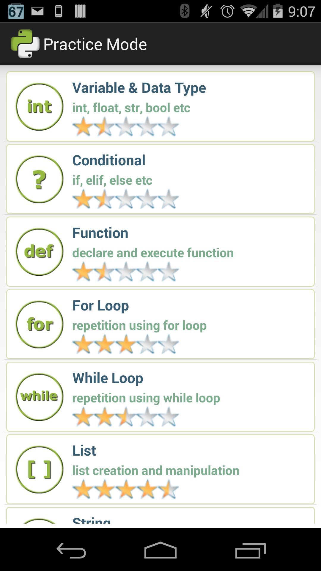 The questions are sorted into different topics. User can choose to practise on their topics of choice.
