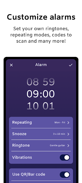 Turn off alarms by scanning the QR Code and always get up on time!