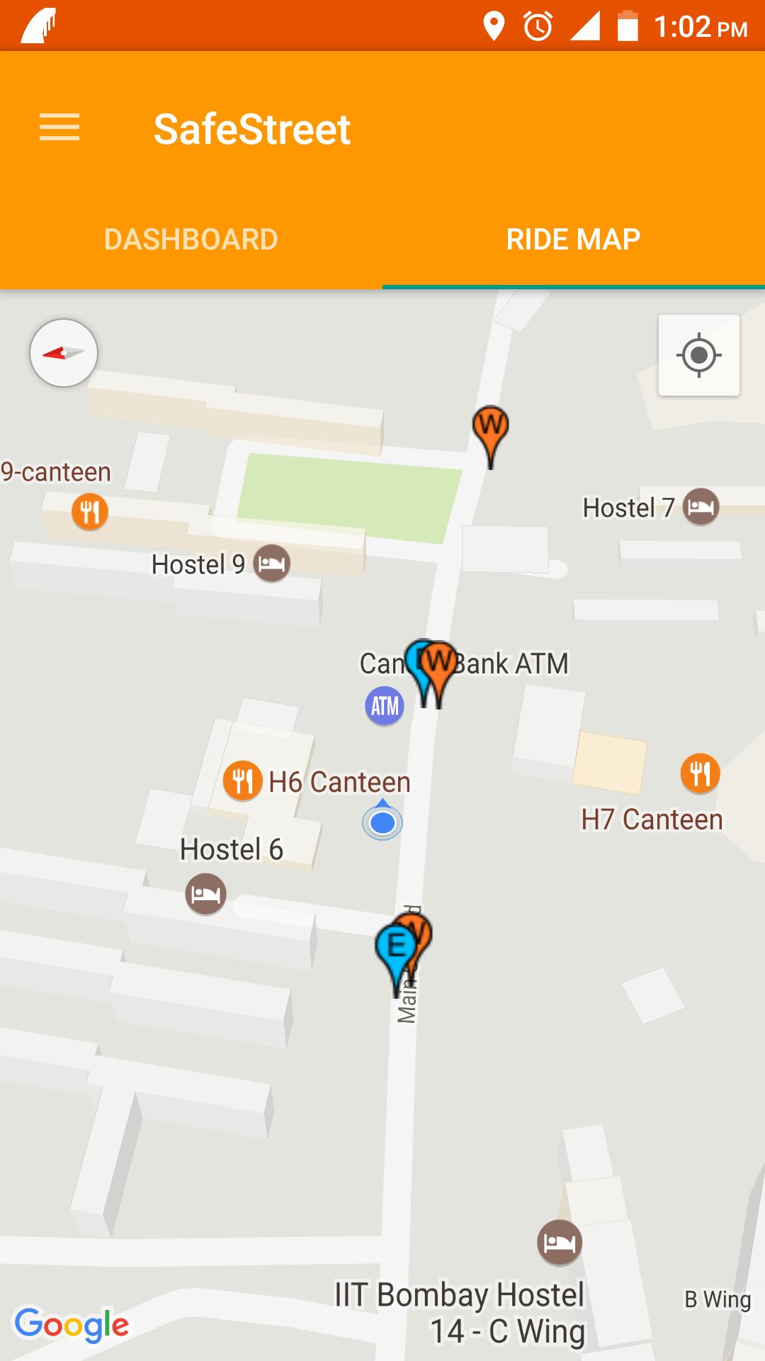 * The map of potholes/bumps obtained from manual complaints and automated detection can be seen in the next version. This map can be used by commuters to travel safely on roads, and by people to report to authorities to fix the potholes.