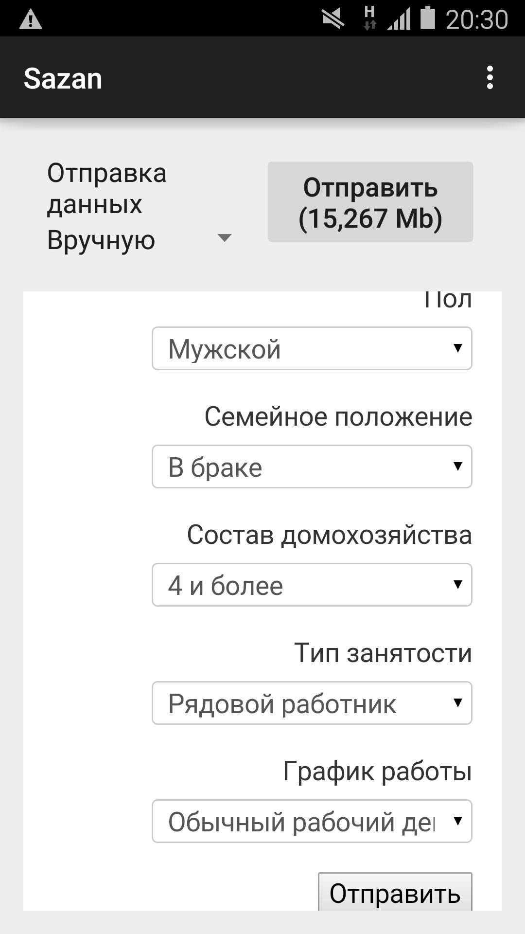 To improve the algorithms of work and further development, the application asks to fill out a small questionnaire and sends accumulated information to our server.