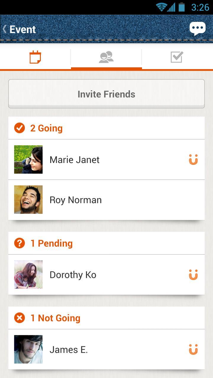 • You can invite your friends to events by your Facebook friend list.