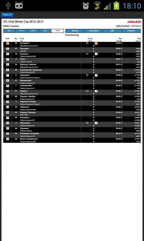 Application to display the online Rally results held by STI-Club.su.