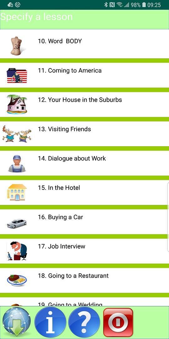 The application contains eleven drills for Subconscious Training English skills explained on the website www.lbtechnology.net.