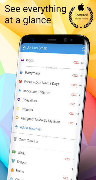 • SMART LISTS - Create custom lists using filters that organize tasks by any data element in Todo Cloud. Want to see tasks due to 4 weeks and beyond? Want to see tasks assigned to a person? Want to see tasks tagged with a specific word? You can do than that. Push everything into Todo Cloud with the power to search, organize and track tasks just the way you want.