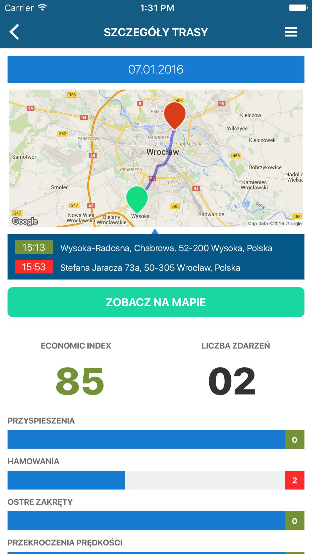 The application collects data from a device plugged into the vehicle and like a personal driving instructor, after each trail traveled, it informs the driver what mistakes he made, what fuel consumption and the cost of a kilometer. Thanks to this, he can correct his driving style, and thanks to this to ride more economical and safer.