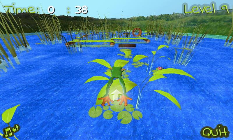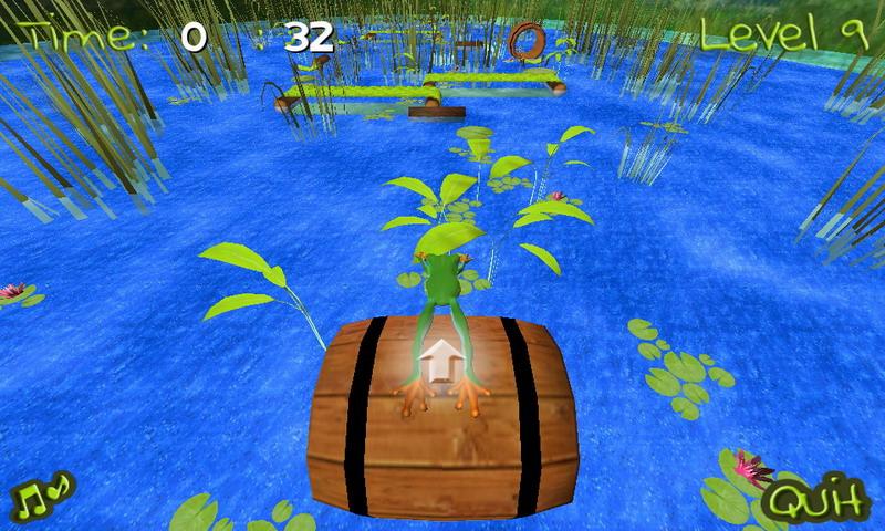 يجب أن تقفز على زنابق المياه ، وجذوع الأشجار ، والأوراق والعقبات الأخرى التي تجريها عبر البحيرة دون الوقوع في الماء.