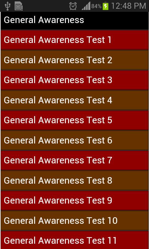 Die Bankprüfungs -App enthält Tests, die in den folgenden Abschnitten verteilt sind: