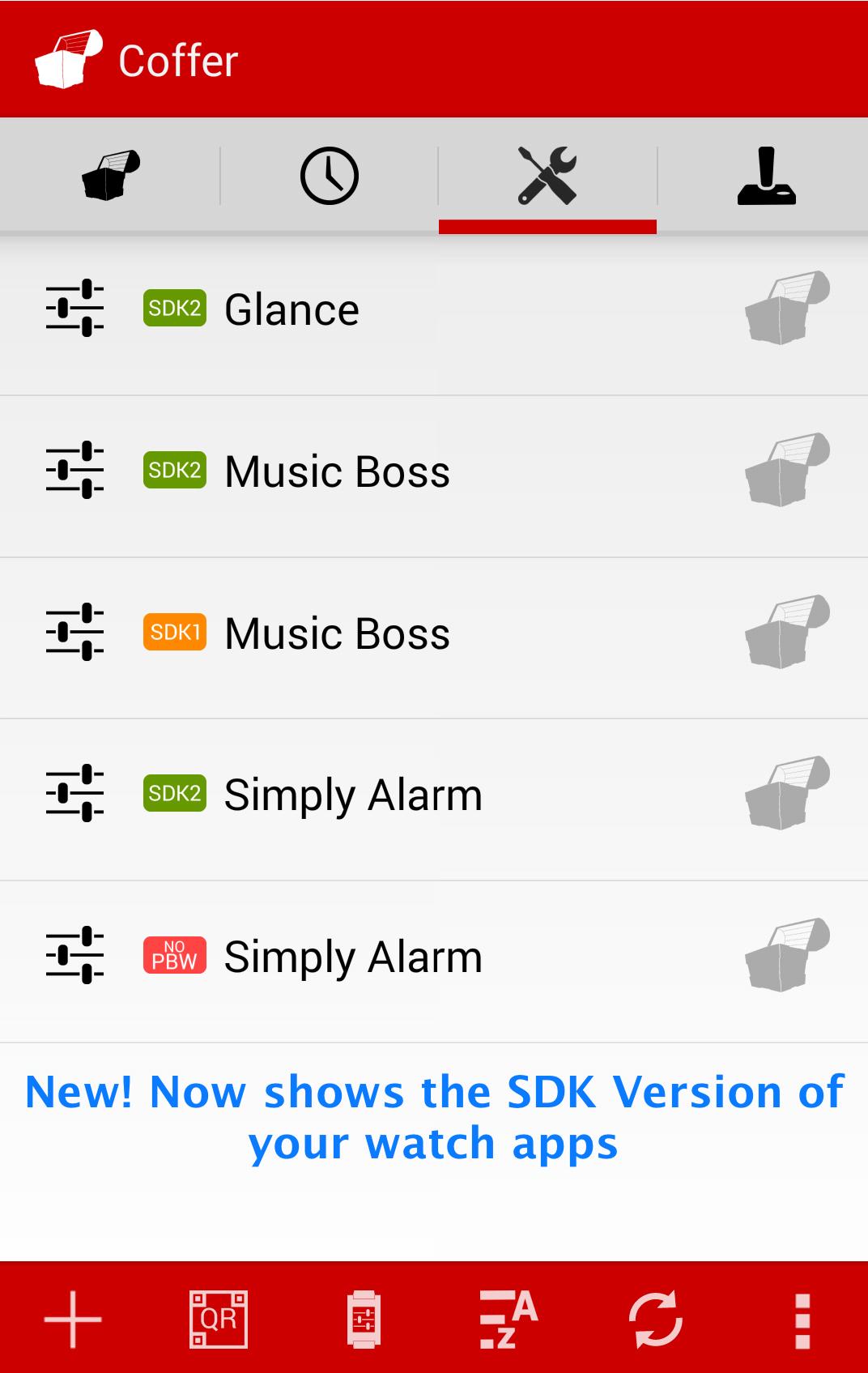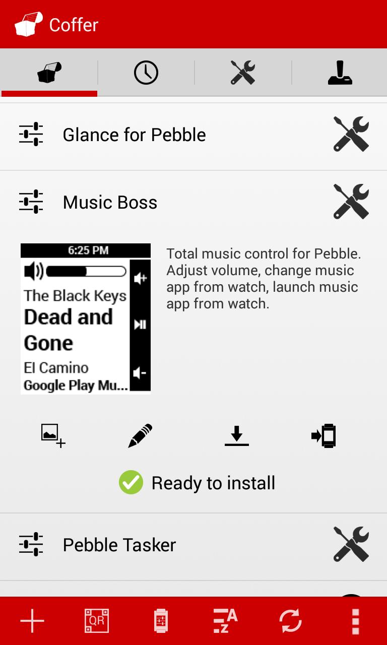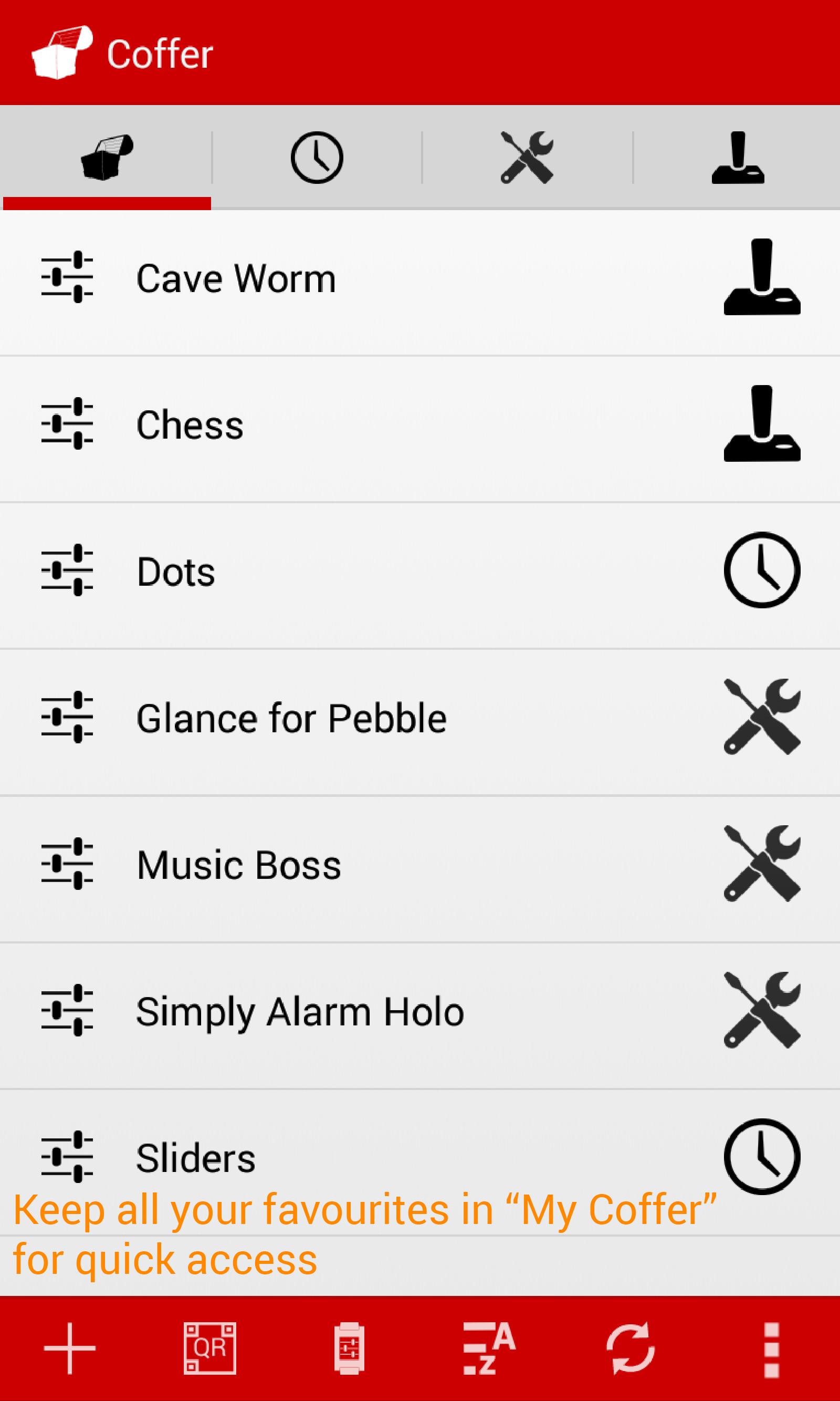 Sie können sich schnell mit Pebble Watch -Apps Coffer , die bereits auf Ihrem Android -Gerät gespeichert sind, indem Sie das Web auf Ihrem Gerät stöbern und auf Links klicken, um Apps anzeigen, indem Sie App -QR -Codes scannen oder die Web -URLs manuell eingeben. Sie können sogar ein Bild hinzufügen, um Sie genau daran zu erinnern, wie die App aussieht! Sobald Sie eine Watch -App auswählen, wird der Name und die Zusammenfassung der App automatisch in Coffer ausgelöst!