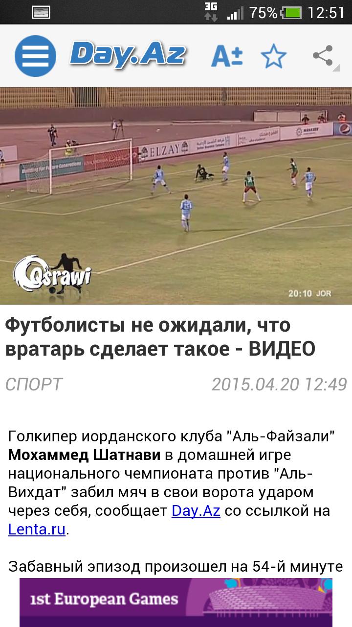 Day.Az - Jetzt in jedem Smartphone auf Anrdoid. Die wichtigsten, interessantesten und relevanten Nachrichten kamen noch näher! Darüber hinaus sind sie jetzt sehr einfach und bequem mit Freunden oder sozialen Netzwerken zu teilen.