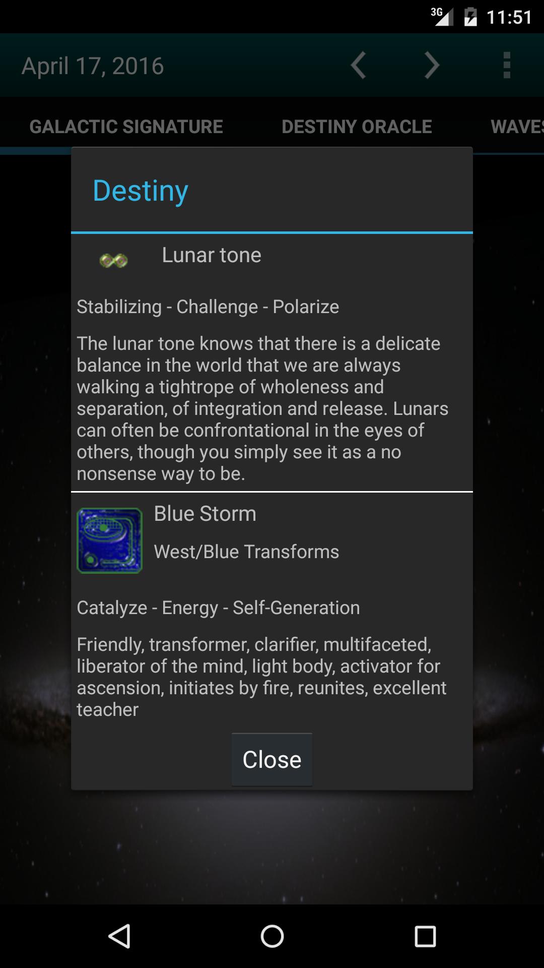 Diese Version kann die galaktische Signatur, das Destiny Oracle, die Wavespell, die Tzolkin, 13 Mondkalender und die Mondphasen anzeigen und ein Widget für den Startbildschirm haben, um das aktuelle Datum anzuzeigen.