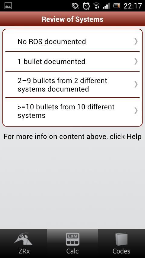 • Codierungsrechner: Unser einfacher E & M -Codierungsrechner hilft den Anbietern, die geleisteten Arbeit ordnungsgemäß zu krednen, und nimmt die Verwirrung der E & M -Codierung, die jetzt für Verschreiber der Verhaltensgesundheit neu ist, Verwirrung heraus. Geben Sie einfach die Anzahl der für die EvCoder der gegenwärtigen Krankheit dokumentierten Kugeln, die Überprüfung der Symptome, die körperliche Untersuchung usw.