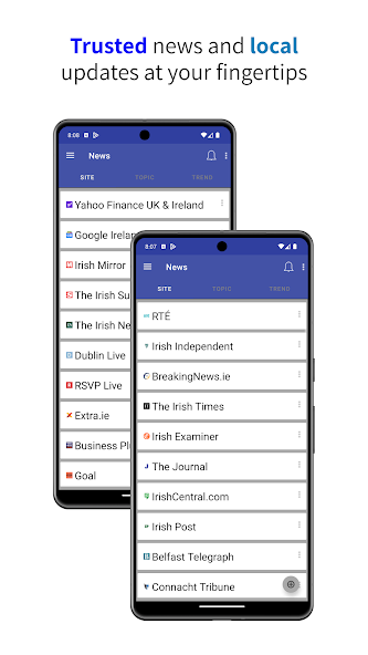 Zugang zu Nachrichten von vertrauenswürdigen irischen Outlets, einschließlich der Irish Times, RTé News, The Independent, Irish Examiner, BreakingNews.ie und mehr. Bleiben Sie mit der internationalen Berichterstattung von Quellen wie BBC, CNN, The Guardian und anderen informiert.