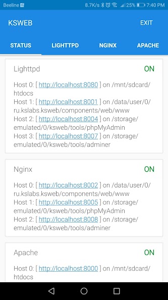 KSWEB - Eine Suite von Webentwickler für die Android -Plattform (Server, PHP, MySQL).
