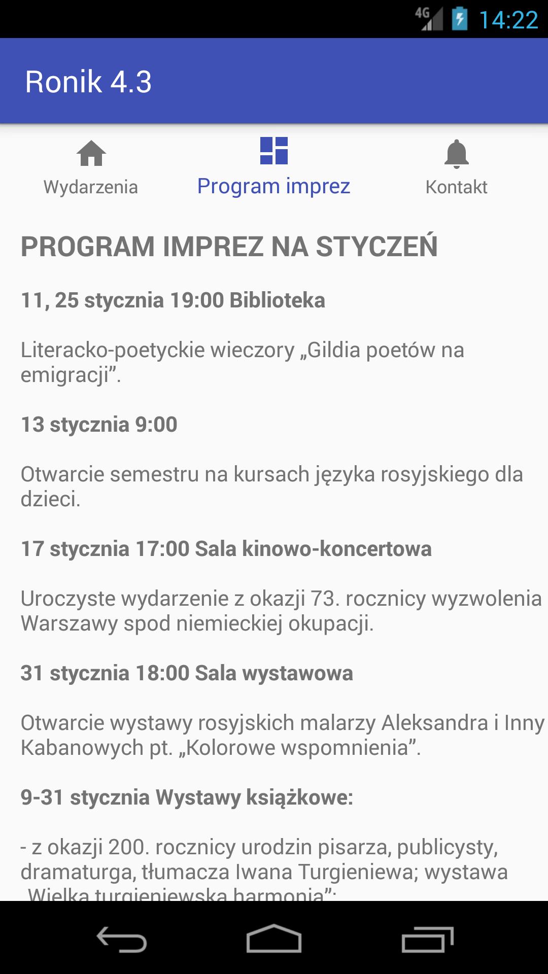 Das russische Zentrum für Wissenschaft und Kultur in Warschau ist seit November 1962 in Betrieb. Zunächst befand es sich im Zentrum der Stadt in einem alten Herrenhaus in der Foxal Street 10. Seit Oktober 2005 hat die RCNA einen Teil des Gebäudes des Handelsvertretungsbüros der Russian Federation in Poland in der Belvedere Street 25 im Zentralbezirk von Warsaws besetzt. Seit 2012 bewohnt die RCNA zwei Flügel des Gebäudes. In der ersten, die unseren Besuchern bekannt sind, sind Teile des Gebäudes eine Bibliothek, ein Video, eine Konzert- und Ausstellungshalle mit 100 Sitzplätzen und Bürogelände. Im zweiten Teil des Gebäudes neben dem Eingang zum Konsulat der Russischen Föderation gibt es eine große Kinokonzerthalle mit 200 Orten und russischen Sprachkursen.