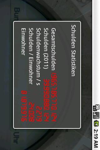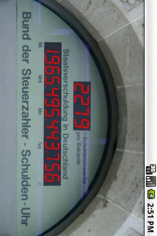 Eine originale Nachbildung der wohl bekannteste Schuldenuhr Deutschlands an der Eingangstür zum Bund der Steuerzahler Deutschland e.V., die die aktuelle Staatschulden genau anzeigt als Android App.